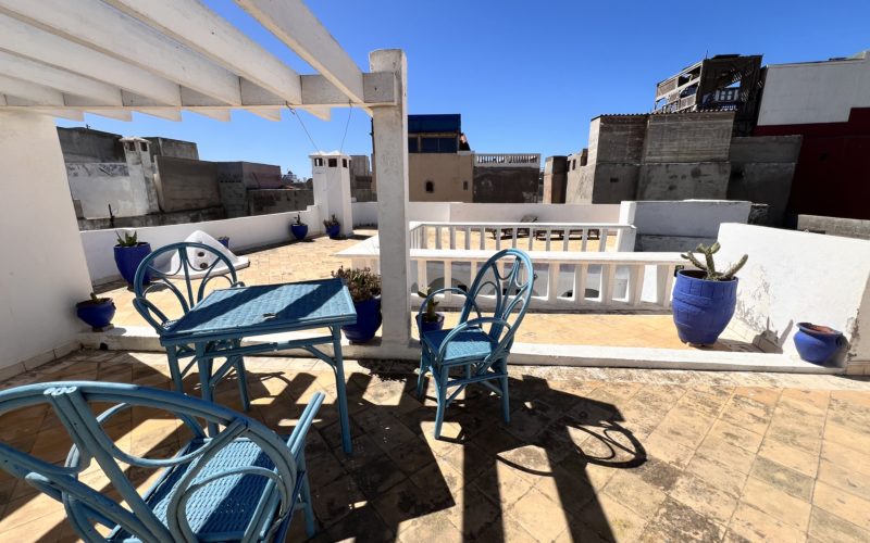 Le riad dispose également d’une grande terrasse ensoleillée, parfaite pour créer un espace détente, un rooftop ou un coin restauration avec vue sur la médina.